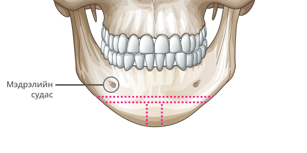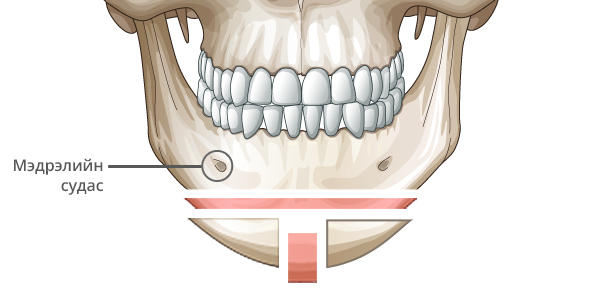 Мэдрэлийн судсыг тойруулж, эрүүний төгсгөлд T зүсэлт хийнэ.