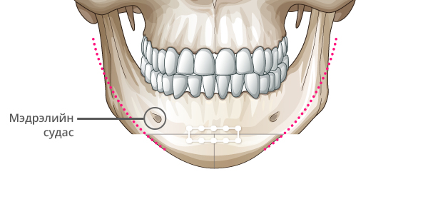 Мэдрэлийн судсыг тойруулж, эрүүний төгсгөлд T зүсэлт хийнэ.