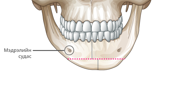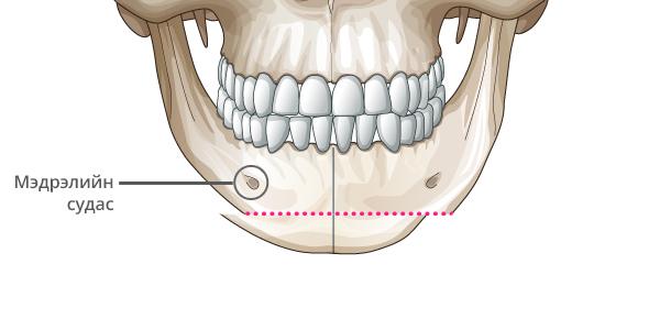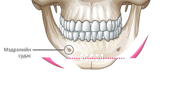 Мэдрэлийн судсыг тойруулж, эрүүний төгсгөлд T зүсэлт хийнэ.